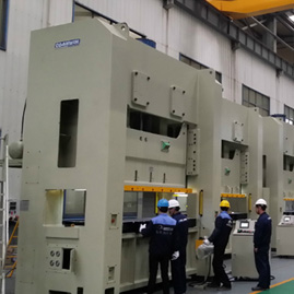 閉式雙點(diǎn)壓力機(jī)T2N系列·高剛性機(jī)身分為橫梁、立柱、底座,高速精密沖床廠家分體閉式結(jié)構(gòu),用四根拉緊螺桿拉緊,機(jī)身剛性好、變形